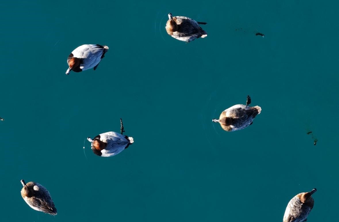 Burdur'un Yeşilova ilçesinde yer alan Salda Gölü'nde göç döneminde bölgeye gelen elmabaş patka ördekleri havadan görüntülendi.