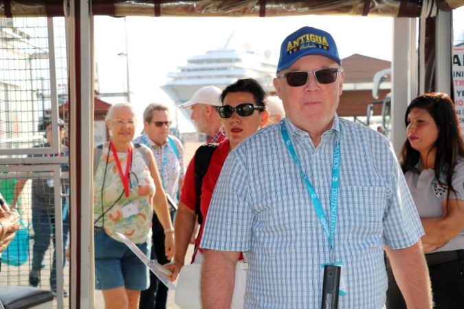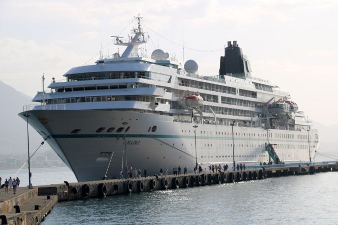 Rodos'tan hareket eden Bahama bandıralı, lüks gemiyle Alanya'ya çoğunluğu Alman vatandaşı 471 turist geldi. 314 mürettebatı bulunan gemiden inen turistler ilçede tarihi ve turistik yerleri gezdi. Bazıları da ilçe merkezinde alışveriş yapmayı tercih etti. Kruvaziyer, saat 18.00'da Limasol'a gitmek üzere Alanya Limanı'ndan hareket edecek.