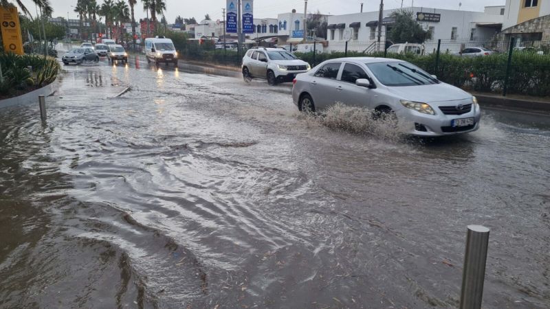 Meteoroloji 4’üncü Bölge Müdürlüğü, dün Muğla ve çevresi için sağanak yağmur uyarısı yaptı. Bu kapsamda beklenen sağanak yağmur sabah saatlerinden itibaren Bodrum'da aralıklarla etkili oldu. Yarımadanın kent merkezi başta olmak üzere Turgutreis, Yalıkavak ve Gölköy mahalleri, sağanak yağmurdan en çok etkilenen yerler oldu. Yağış nedeniyle bazı cadde ve sokaklarda taşkınlar oluştu. Araç sürücüleri suyla dolan yollarda ilerlemekte güçlük çekti. Vatandaşlar yağmurdan korunmak için kapalı alanlara sığındı. Derelerin debisi arttı. Yağmur suları derelerle denize taşındı.