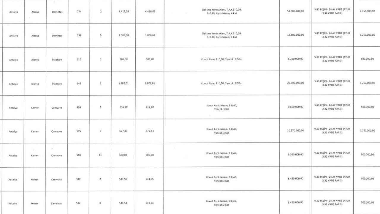 İller Bankası tarafından düzenlenecek olan satış sürecinin resmi ve güvenilir bir ortamda yapılacağı belirtilirken, yatırımcılar için cazip fırsatlar sunulduğu vurgulandı. Müzayede, aynı anda üç farklı salonda gerçekleştirilecek. 27 Ocak 2026’da gerçekleştirilecek olan müzayede en çok dikkat çeken alanları ise Alanya ile Kemer’de yer aldı.