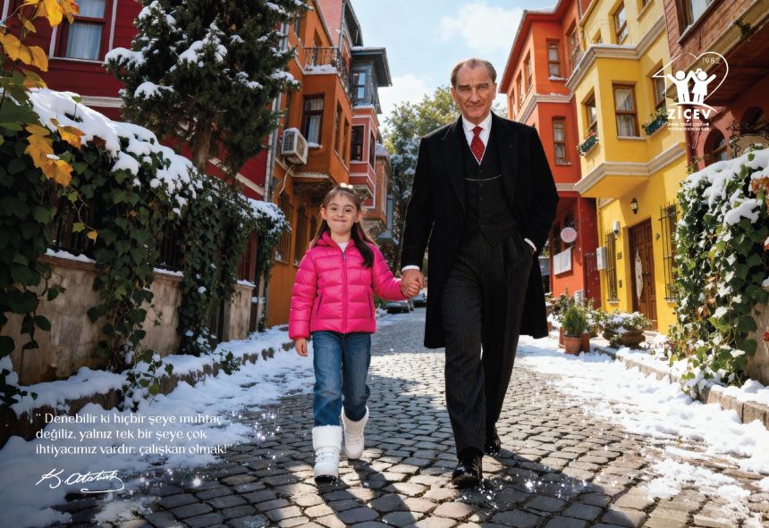 Zihinsel Yetersiz Çocukları Yetiştirme ve Koruma Vakfı (ZİÇEV) Antalya Şubesi’nin bu yıl ki takvim teması ulu önder Mustafa Kemal Atatürk ile ZİÇEV’li çocuklar oldu. Her yıl takvimlerinde farklı bir tema kullanan ZİÇEV’in bu yıl ki teması büyük beğeni topladı. Yapay zeka ile hazırlanan takvimde her aya ZİÇEV’li bir çocuk ile Mustafa Kemal Atatürk’ün el ele fotoğraf ile Ataürk’ün söylediği özlü sözler yer aldı.